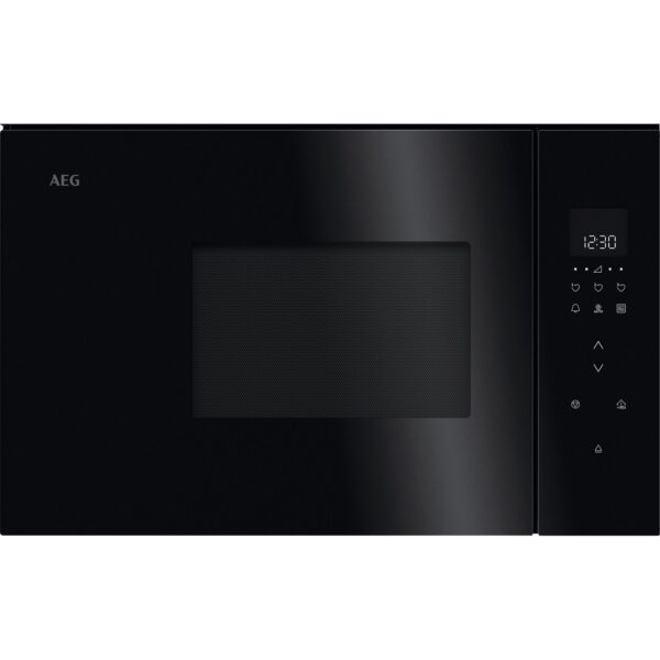 The AEG NMB6G171SB is a built-in microwave oven with a grill from the 6000 Series, featuring a 17-litre capacity and 800W of power. It is designed for installation in high or low cabinets and includes a specialised steam cooking set.